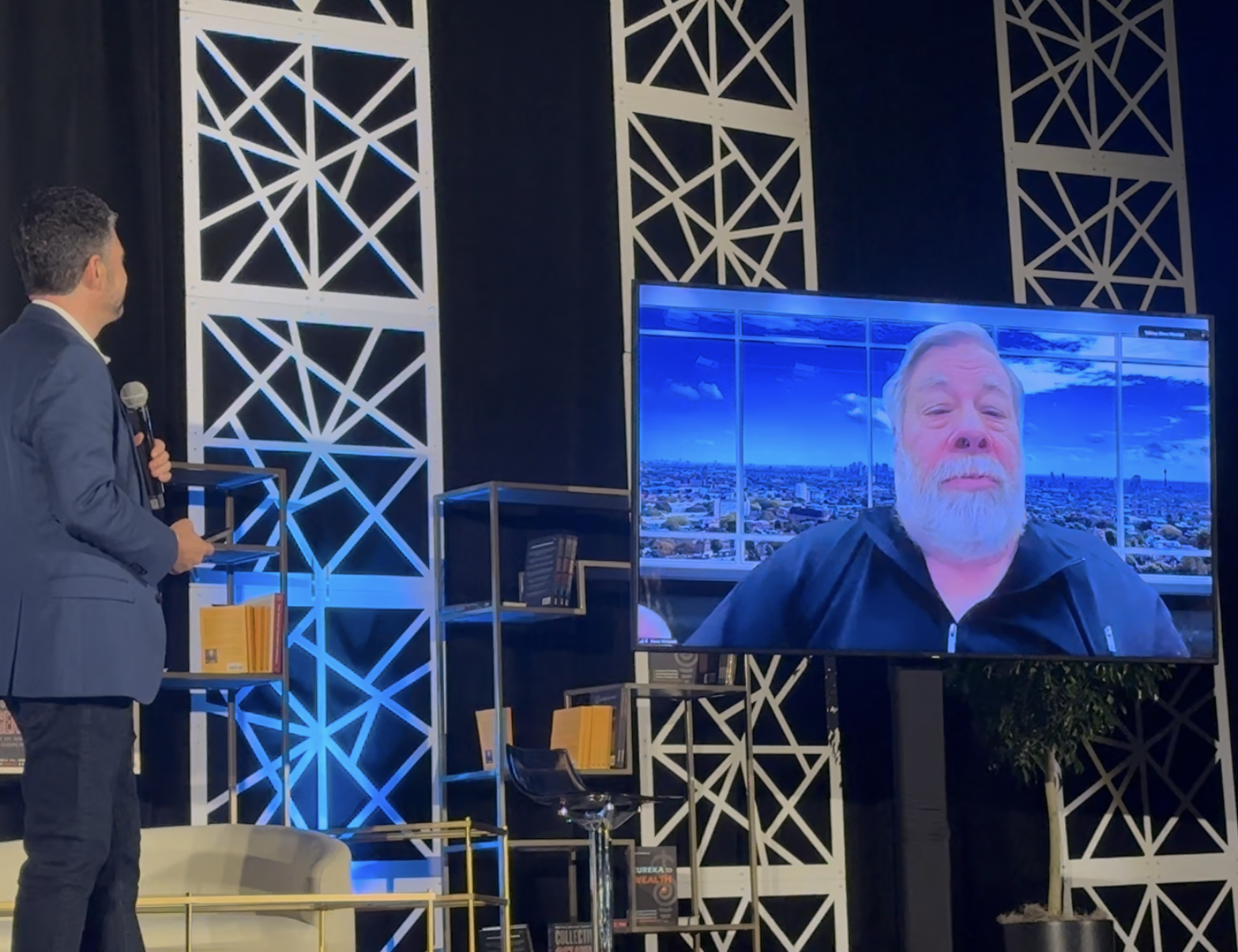 Steve Wozniak gave an opening talk on thinking differently, and how engineering, marketing and sales are all equally important. He reflected on the early days of Apple, starting from just building computers for fun.